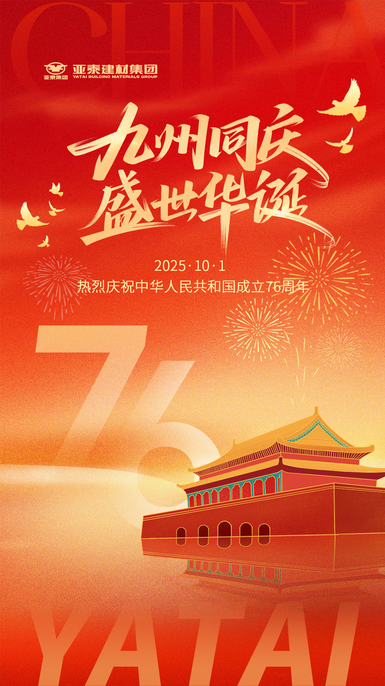 在此欢庆之际,亚泰建材集团怀着崇敬与喜悦之情,向伟大的祖国致以最诚挚的祝福。愿祖国山河锦绣、国泰民安,在新时代的征程中,继续书写辉煌篇章!