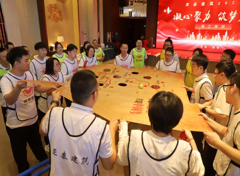 最后的共绘蓝图环节,员工分组协作,在有限的时间内拼接完成一幅完整、精美的画卷。过程中大家积极沟通,分工明确,充分展现了亚泰建筑高效的团队协作能力。本次拓展培训,在轻松愉快的氛围中,为员工赋予了新的活力,有效提高了团队的凝聚力和协作能力,也为后续培训课程营造了积极、团结的良好氛围。