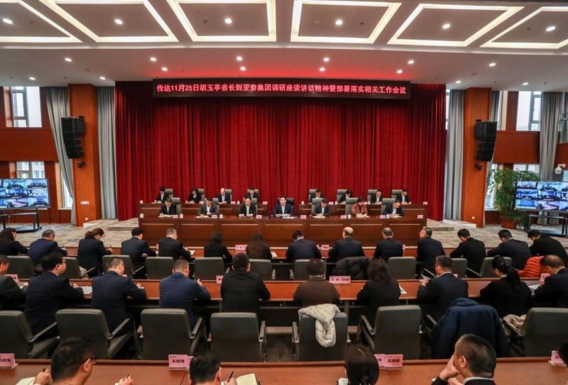 2025年11月29日上午,亚泰集团召开“传达11月25日吉林省委副书记、省长胡玉亭到亚泰集团调研座谈讲话精神暨部署落实相关工作会议”,会议由亚泰集团党委书记、董事长陈铁志主持,亚泰集团副董事长、总裁刘树森,监事会主席曲国辉以及其他高级管理人员,集团部门全体管理人员,各产业集团、企业中高级管理人员参加会议。大会在集团公司五楼多功能厅设立主会场,在北京、海口等地设立40个视频分会场,共计640人参加会议。