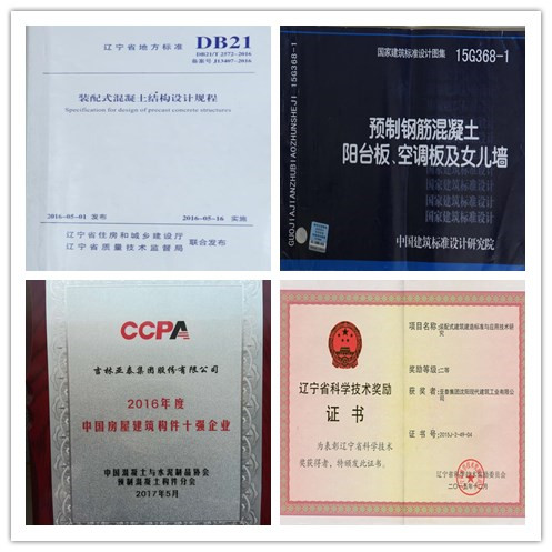 近年来,企业以市场为导向,以技术为依托,不断利用新技术开发新产品。企业拥有自己的技术研发团队和创新工作室,制定了完善的研发组织管理制度和培训机制,不断深化技术创新能力。企业参编了国家建筑标准设计图集《预制钢筋混凝土阳台板、空调板及女儿墙》、辽宁省地方标准《装配整体式剪力墙结构设计规程》、沈阳市地方规范《装配整体式混凝土生产和施工技术规范》等规程;2012年7月-2016年6月公司承担了国家科技支撑计划中《装配式建筑用墙板及构配件生产技术研究》课题之子课题《新型工业化构配件生产工艺技术研究》和《新型构配件养护的节能降耗技术研究》的研究;2015年公司作为《装配式建筑建造标准编制与应用技术研究》项目的研究及应用基地,荣获该项目的“辽宁省科学技术二等奖”获奖单位。2016年公司参与的《装配式混凝土结构预制构件制作关键技术》荣获沈阳市科技进步二等奖。2016年参编了我国第一套面向高校尤其是高职院校的装配式建筑教育系列教材第一册《建筑产业现代化概论》和第二册《装配式混凝土结构工程》。2016年被评为全国房屋建筑预制混凝土构件生产十强企业,2017年被评为国家装配式建筑产业化基地。