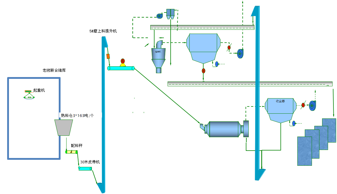 为改变这一现状,进一步降低公司小品种水泥的生产成本,公司特成立攻关小组,利用2019年初水泥付出淡季,通过改造5#磨入1#-6#油井水泥库输送工艺流程、简化老线联合储库熟料入5#磨输送工艺流程、压缩老线联合储库熟料的汽车外倒费用等措施,成功实现了5#磨利用联合储库熟料(低成本制造、工艺最优化)生产油井水泥、低碱水泥的能力。