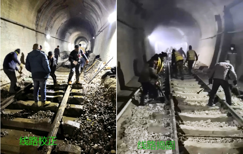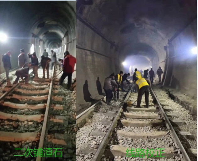 2020年1月4—19日,亚泰明城公司自行现场设计、自行组织施工,对山洞专用线原有轨道、枕木等设备进行拆除、倒运,对原路基进行破碎、挖运;对新路基高度检测、渣石回填、找平、夯实;对新线路混凝土枕、木枕、轨道进行铺设、校正及扣件的安装加固;对新线路的渣石二次回填、找平、捣固及线路辅助设施的完善。历时15天,完成土石方撤方量945立方米,平均高度降低0.9米,延长停车线140米。一次性停车数量由20车提高到30车,净增加10车,日增加40车,日总装车量达到180车,火运日输出总能力达到11520吨,为熟料火运输出及海运南下奠定了坚实基础。